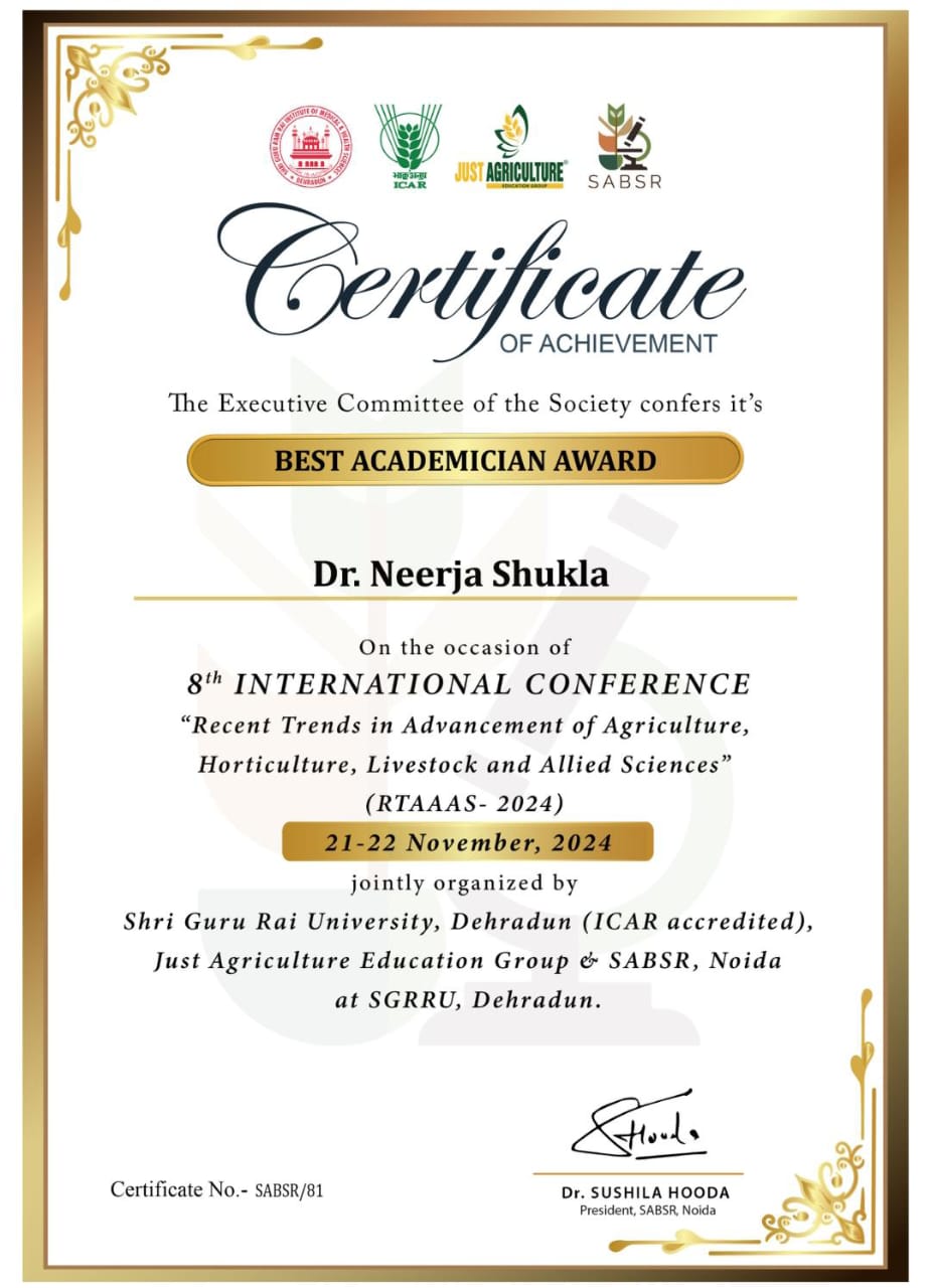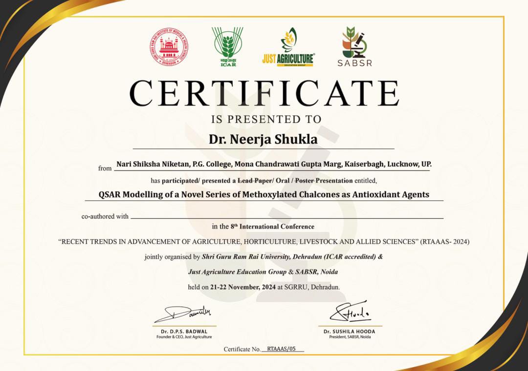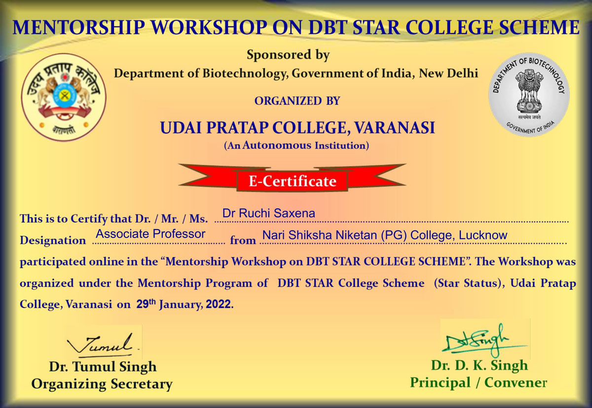 A grant of Rs180950 /- has been approved to Prof Seema Singh of Zoology Department under Research and Development Scheme for research work to the teachers of Government and Aided colleges of Uttar Pradesh by State Higher Education Council. Topic of her project is Socio-Economic Conditions and Sustainable Holistic Solution For Street Vendors of Uttar Pradesh. Duration of her project is two years i.e.1st April 2023 to 31st March 2025